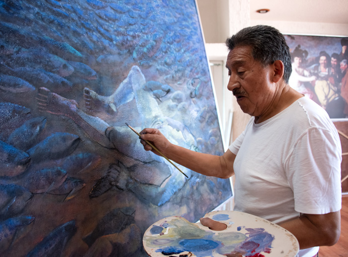 Soy pintor y hasta ahora he desarrollado mis artes visuales en tres temas principales: el nostálgico paisaje rural, el enfermizo paisaje urbano y el misterioso paisaje marino. Mi primera exposición colectiva se llevó a cabo en 1966 en la Academia de San Carlos; he recorrido una larga lista de galerías en México, Estados Unidos, Chile, Alemania y otros países. También he expuesto en el Palacio de Minería, Exposición Internacional de Arte de Chicago; Clayton Rein Galleries, Minnesota; y Wimmer Gallery, Múnich, Alemania.